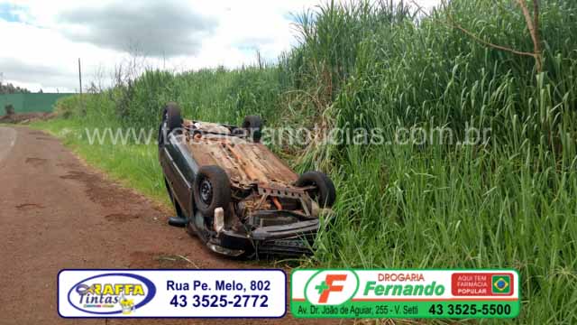 Um Capotamento na rodovia Dino Veiga Filho, que liga Bandeirantes a Itambaracá, movimentou a Equipe do Corpo de Bombeiros e PRE na manhã deste sábado, o condutor do veiculo Gol com placas de Bandeirantes, perdeu o controle do veiculo vindo a capotar na primeira curva da rodovia no sentido Bandeirantes a Itambaracá, logo depois da linha férrea, segundo informações de um familiar do condutor ele foi conduzido pela Equipe do Corpo de Bombeiros para o Pronto Socorro da Santa Casa de Bandeirantes, consciente e orientado, com algumas escoriações pelo corpo, onde no hospital iria passar por uma melhor avaliação médica.
