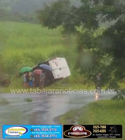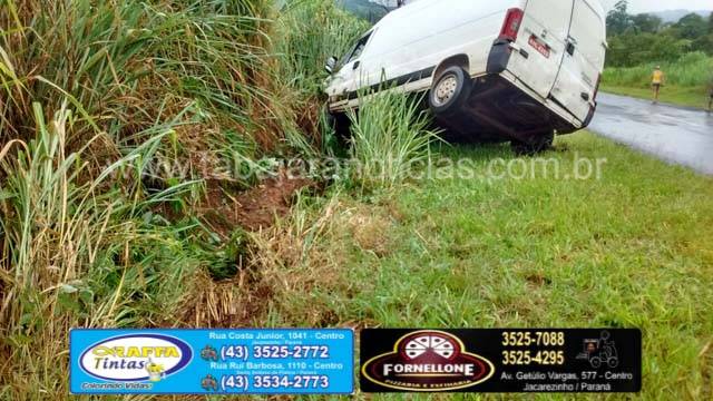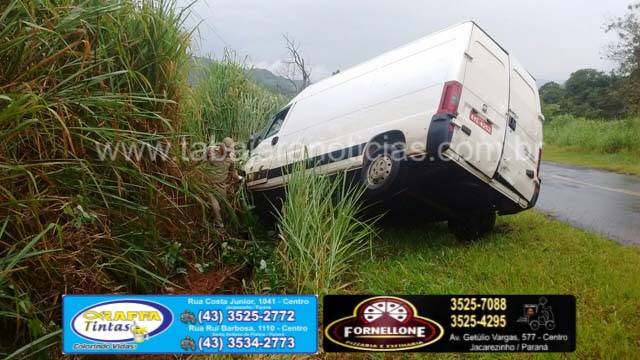 O acidente aconteceu próximo a entrada do Bairro Laranjal, segundo relatou o motorista, ele seguia sentido Ribeirão quando na curva a van derrapou e perdeu o controle, passou direto na curva saindo da pista e só parou após bater em um barranco e tombar em seguida, chovia na hora do acidente.