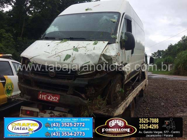 Na van placas de Maringá, carregada de livros e revistas seguia somente o motorista Alexandre Kiochi Matsuta, que reside em Londrina, sofreu uma luxação no ombro direito e escoriações pelo corpo, sendo socorrido pelos Soldados Thiago e Marchioni dos Bombeiros e encaminhado ao pronto socorro, a equipe da Policia Militar composta pelos soldados Cason e Procópio foram os primeiros a chegar e permaneceram orientando o transito até a chegada do Soldado Matiussi da Policia Rodoviária Estadual.