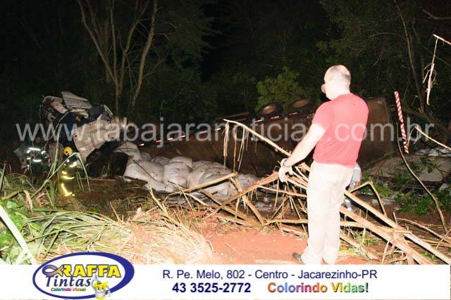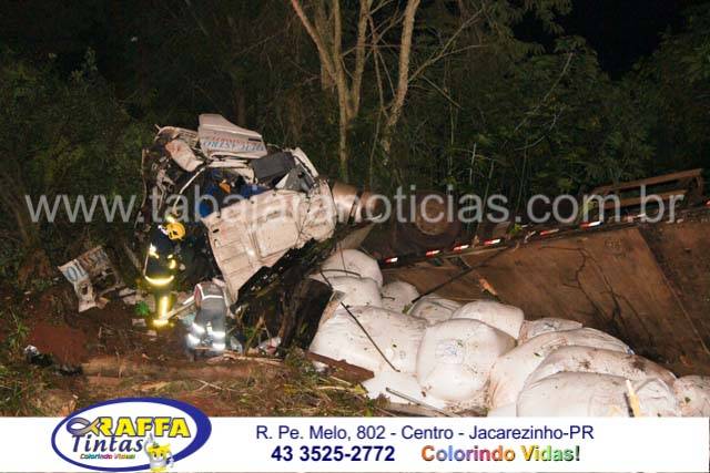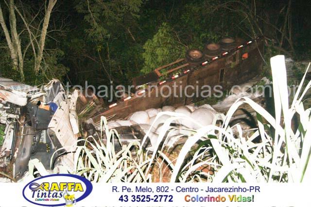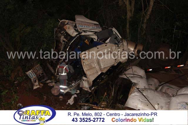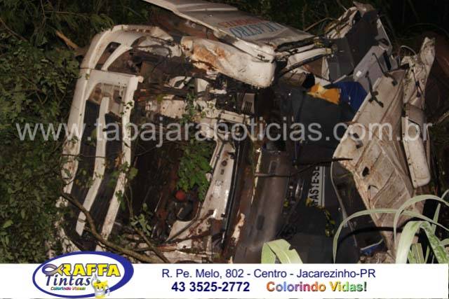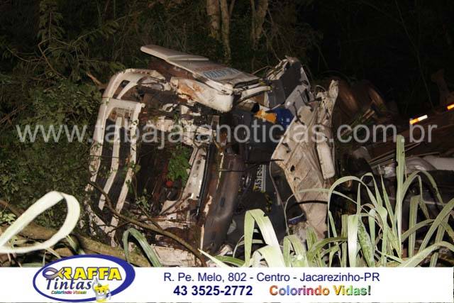 A cabine da carreta ficou totalmente destruída, o motorista ficou preso as ferragens e os Bombeiros tiveram muito trabalho para retira-lo o que só foi possível após mais de meia hora de trabalho dos profissionais que tiveram que cortar parte da lataria para fazer a liberação da vitima, que foi socorrida pelos Bombeiros de Santo Antonio da Platina com o auxilio dos socorristas da Econorte e encaminhado ao hospital de Jacarezinho com ferimentos considerados graves e suspeita de fratura em ombro