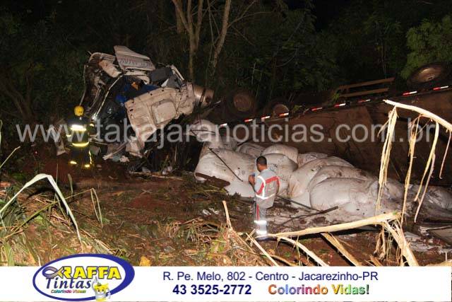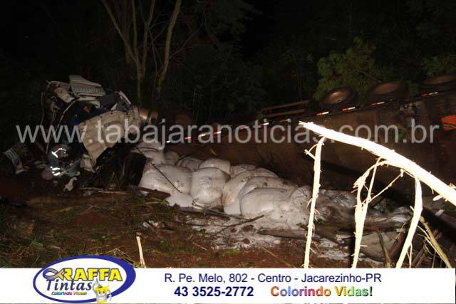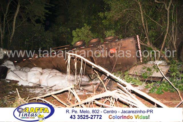 Segundo informações a carreta carregada com ureia seguia sentido Jacarezinho quando ao chegar no local não se sabe o motivo acabou perdendo o controle, saiu da pista onde ó parou após bater em varias arvores