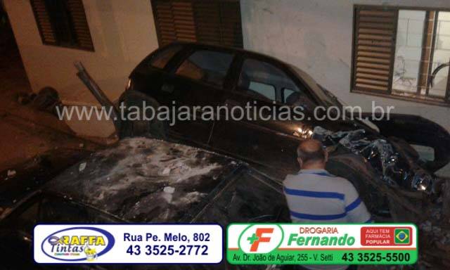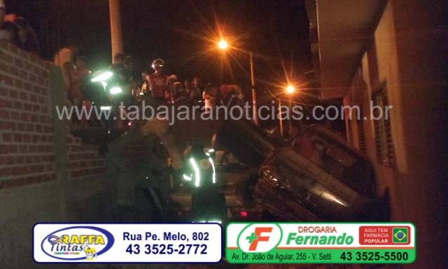 MOTORISTA PERDE O CONTROLE DA DIREÇÃO E CAI EM CIMA DE OUTRO CARRO NO QUINTAL DE RESIDENCIA EM JACAREZINHO