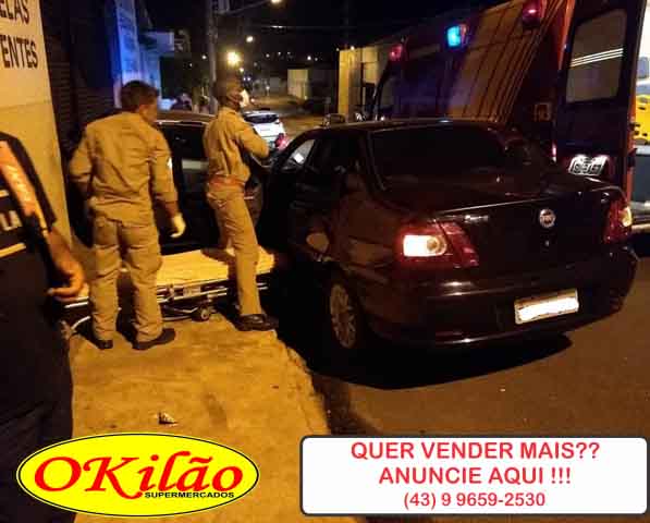 Motorista sofre mal subito, bate em carro estacionado e o arrasta até bater em porta de empresa no centro de Jacarezinho.