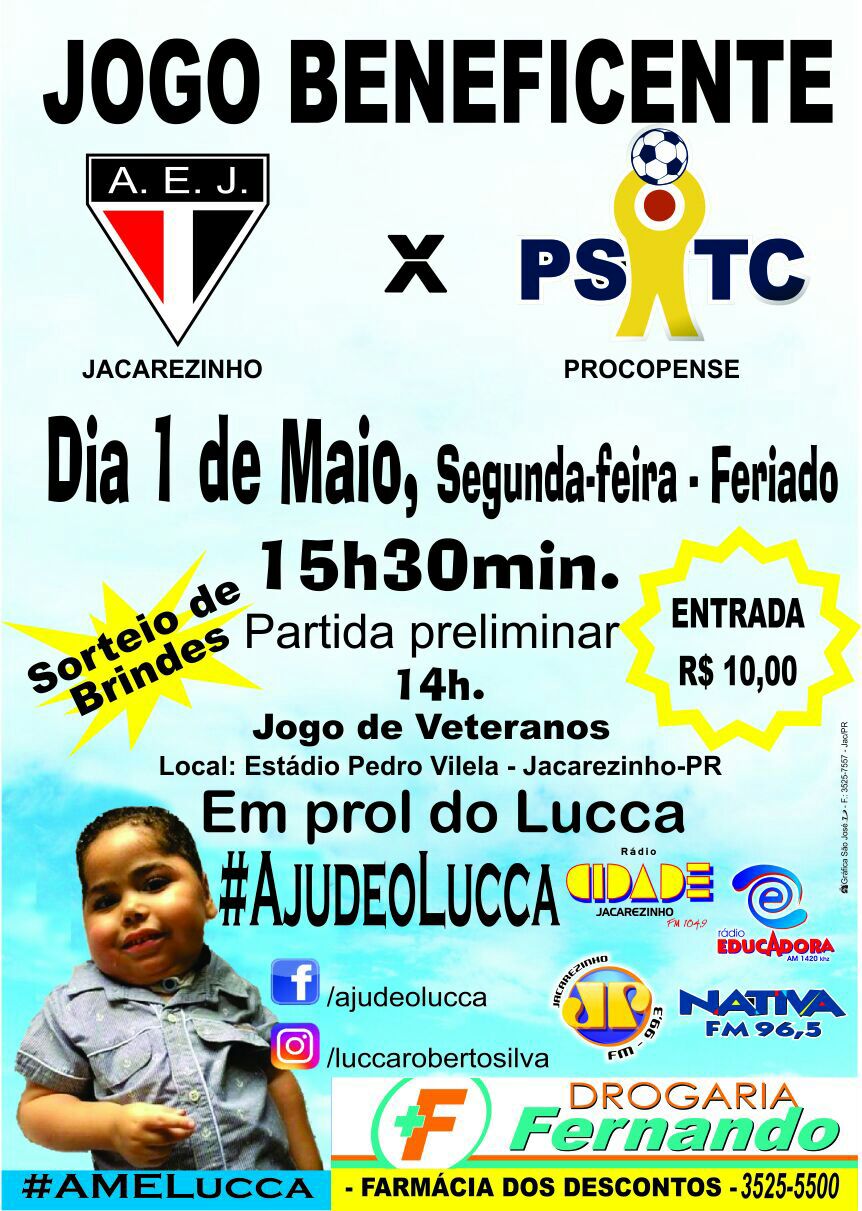 As equipes Procopence e Jacarezinho, se enfrentarão em uma partida que acontecerá no Estádio Pedro Vilela em Jacarezinho, no próximo dia 01 de Maio, a renda será revertida para ajudar o garoto Lucca.