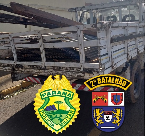 A Equipe policial deslocou ao endereço, onde deparou-se com alguns indivíduos no interior do pátio, sendo ainda constatado aproximadamente 23 (vinte e três telhas) e seis caibros de madeira no interior de uma caminhonete.