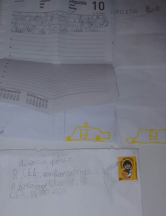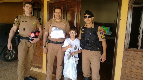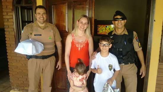 Um garotinho de apenas 9 anos, residente no município de Ribeirão Claro, teve sonho realizado pelos policiais militares de sua cidade. Inspirado no tio, que foi Policial Militar e atualmente está na Reserva Remunerada (aposentado), o menino pretende seguir seus passos.Um garotinho de apenas 9 anos, residente no município de Ribeirão Claro, teve sonho realizado pelos policiais militares de sua cidade. Inspirado no tio, que foi Policial Militar e atualmente está na Reserva Remunerada (aposentado), o menino pretende seguir seus passos. Allan Gustavo conta hoje com 9 anos de idade. Aniversariante do mês de agosto, teve como presente de aniversário uma visita das Equipes de Polícia Militar de Ribeirão Claro. A homenagem aconteceu na última terça-feira, dia 29. Apaixonado por viaturas, equipamentos e fardamentos policiais, Allan tem como maior desejo ser um Policial Militar. Segundo sua mãe, a admiração e encantamento pela atividade policial ficam evidentes principalmente em reuniões familiares, onde o tio relembra as histórias e aventuras vividas enquanto Policial Militar. Na ocasião, Denise, mãe de Allan, nos relatou que seu filho queria escrever uma carta aos PMs para que lhe visitassem. Escrevendo-a à mão, Alan a deixou a carta na Agência dos Correios para que efetuassem a entrega aos PMs. Assim que receberam a carta, os policiais se comoveram com tamanha sinceridade e paixão pela Gloriosa Polícia Militar do Paraná. O Sargento Moacir, Comandante do Destacamento de Ribeirão Claro, reuniu sua equipe e foi até a casa de Allan para presenteá-lo. Ele ficou emocionado com vinda dos policiais e juntamente com a família agradeceram a homenagem. Houve o tradicional cântico dos parabéns e, na sequência, ele pode desfrutar um pouco mais de seu sonho ao lado daqueles que são seus maiores Heróis, os Policiais Militares.