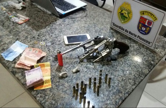 Na noite desta quinta-feira, dia 17, Policiais Militares da Rádio Patrulha da cidade de Jacarezinho prenderam dois indivíduos (18 e 20 anos) com armas, munições e pequena quantidade de entorpecente durante ação policial realizada na Rua Mandaguari, no Bairro Nossa Senhora das Graças.Na noite desta quinta-feira, dia 17, Policiais Militares da Rádio Patrulha da cidade de Jacarezinho prenderam dois indivíduos (18 e 20 anos) com armas, munições e pequena quantidade de entorpecente durante ação policial realizada na Rua Mandaguari, no Bairro Nossa Senhora das Graças. Durante revista pessoal, os PMs encontraram em posse de um dos abordados 1 bucha de maconha, 6 munições calibre .38, um celular (possivelmente de origem ilegal), e pequena quantia em dinheiro. Em buscas pelo local da abordagem, os policiais localizaram 2 revólveres, ambos calibre .38, 1 bucha de maconha, 7 munições calibre .357 e outras 13 munições calibre .38. Cada um dos abordados assumiu a posse de um armamento. Logo, os indivíduos foram presos e conduzidos à DP, permanecendo à disposição da justiça.