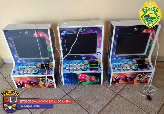 E por último, na Rua Benjamin Constant, um terceiro estabelecimento foi abordado e apreendidas 3 (três) máquinas caça-níqueis, com o proprietário encaminhado, onde responderá pela contravenção de prática de jogo de azar.