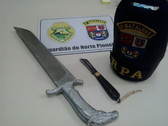 Segundo boletim de ocorrência na noite de sábado 15, após denuncia que uma pessoa estaria ameaçando um casal na cidade de Carlópolis, a equipe da Policia Militar composta pelos sd Bueno e sd Edgard, se deslocaram até uma propriedade rural onde realizaram a abordagem de um de um homem que saia do local, e em revista pessoal foi encontrado com ele uma faca de aproximadamente 30 centímetros, diante dos fatos os policiais encaminharam o homem juntamente com sua motocicleta e a faca a delegacia onde foram tomadas as providencias.