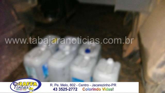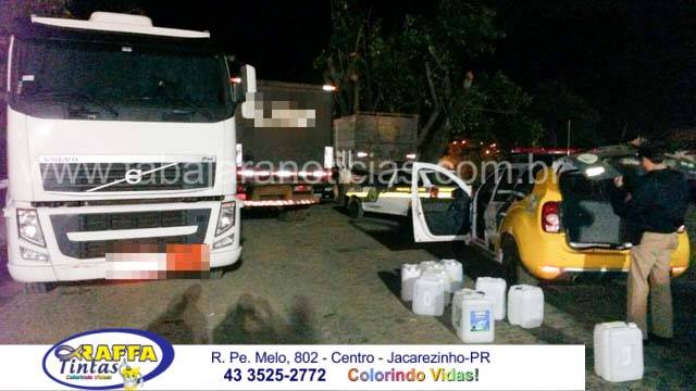 Ainda foi encontrado no carro de um dos suspeitos – I/GM OMEGA – dez galões de 20 litros contendo álcool e outros 3 contendo diesel, que havia sido retirado do caminhão, além de outros 2 galões: um vazio e outro com água, que estavam sobre o tanque do caminhão.