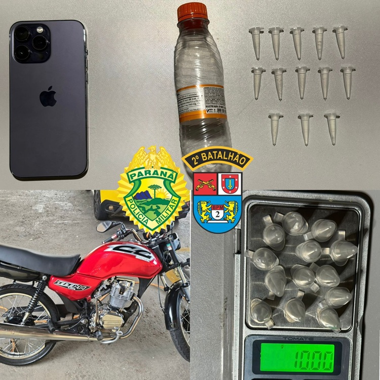 A motocicleta Honda/CG Titan utilizada para o transporte da droga também foi apreendida. A ocorrência contou com apoio da viatura 13665 da Equipe de Operações com Cães, que atuou com os cães K9 Drak e K9 Thor, auxiliando na segurança da intervenção.