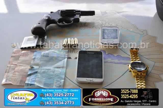 A equipe solicitou apoio das equipes Rotam e Canil, deram voz de prisão ao acusado, em revista em sua residencia foi encontrado celulares, notas de cem e cinquenta reais falsas, e no guarda roupas de sua mãe um revolver municiado.