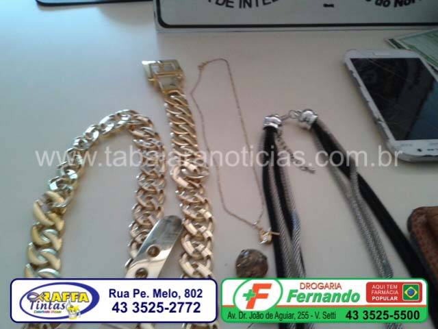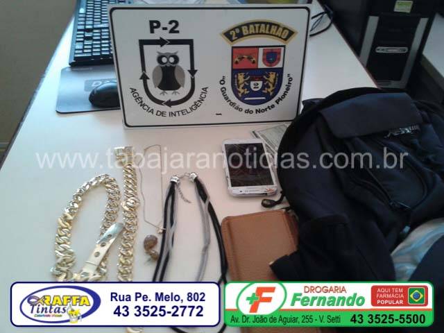 Um homem conhecido como Marquinhos de 24 anos, foi preso pelo crime de roubo e furto, e outros dois homens de nomes Anderson sendo um com 26 anos e o outro com 30, foram presos pelo crime de receptação, com os acusados foram encontrados 01 Pulseira metal amarelo, 01 Brinco de cor amarela, 01 Celular Samsung branco, 01 Mochila preta e uma carteira com documentos