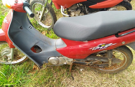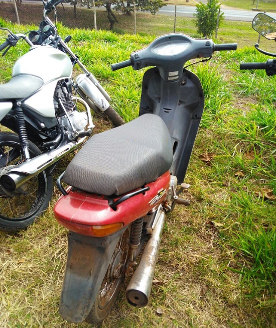 Durante abordagem um indivíduo, percebendo a ação policial, abandonou uma motocicleta próximo da antiga pista de avião, se evadindo logo em seguida. Foi constatado se tratar de uma motocicleta Honda BIZ, sem placa, cor vermelha, que após consulta pelo chassi constou ser uma Honda BIZ, com queixa de furto na cidade de Ourinhos/SP, fato ocorrido em data de 29/07/2017. Diante do fato a motocicleta foi apreendida e repassada para a Policia Civil.