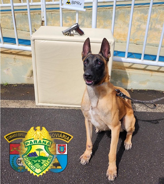 Durante operação de fiscalização em frente ao Posto Rodoviário Platina, as equipes do BPRv abordaram um VW GOLF placas de Jaguariaíva, condutor M. R. G. DE 29 ANOS, e durante a fiscalização com cão Arius do BPRv o cão encontrou uma Pistola marca TAURUS calibre 765 com 05 munições intactas.