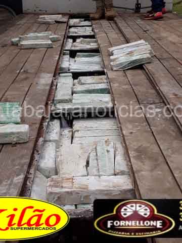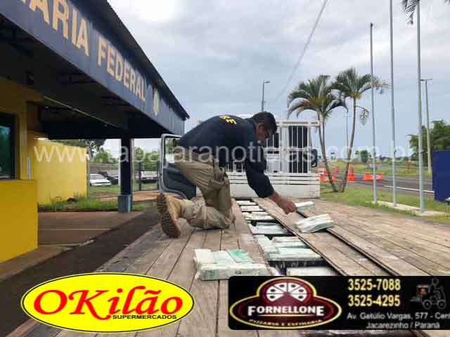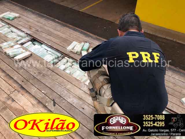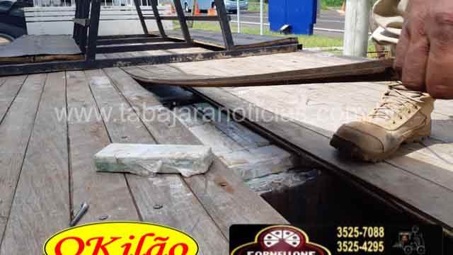 Diante do nervosismo demonstrado pelo condutor durante a abordagem, foi realizada uma revista minuciosa no veículo, vindo a ser encontrado um compartimento oculto sob o assoalho da carroceria do caminhão, que depois de aberto constatou-se em seu interior grande quantidade de substância conhecida como maconha, sendo estimada quantidade em 1.000 volumes sem peso ainda definido oficialmente.