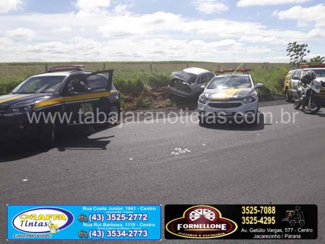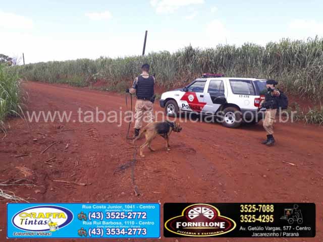 A Equipe Canil de Jacarezinho, foi acionada a dar apoio a PRF e PMESP onde em tentativa de abordagem a um veículo placas AVV-1404 de cor Prata, desacatando a ordem e empreendendo fuga, sendo feito acompanhamento tático por alguns km onde o condutor perdeu controle do veículo vindo a bater no barranco e evadiu-se a pé em direção a uma plantação de soja.