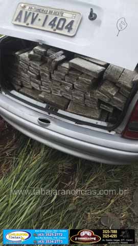A Polícia Rodoviária Federal, em vistoria ao veículo, localizaram escondido no porta-malas e sobre o banco traseiro do veículo, 459 tabletes de maconha prensada, com peso aproximado de 369 Kg.