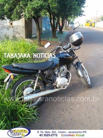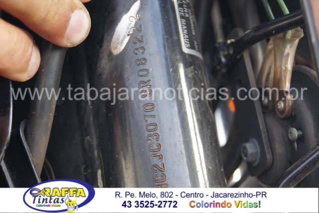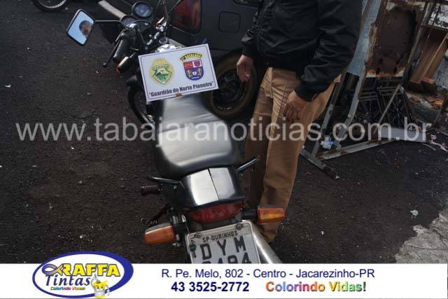 Na manhã deste sábado 30 por volta das 8 hs, equipe da Policia Militar composta pelo Cabo Felix e o Soldado Marzo, enquanto se deslocavam para a troca de plantão ao passarem pela rua Uberaba no Don Pedro Filipak, visualizaram uma motocicleta Honda Titan de cor preta estacionada e suspeitaram pois a mesma estava sem o farol, ao consultarem a placa descobriram que a mesma havia sido roubada na noite desta sexta 29, na cidade de Ourinhos, os Policiais avistaram um rapaz próximo da motocicleta em frete a um residencia e ao sei indagado se a moto seria sua ele negou mas em seguida após a abordagem e a revista pessoal ele acabou assumindo que teria furtado a moto na cidade vizinha, o mesmo usou um clips para fazer a ligação direta