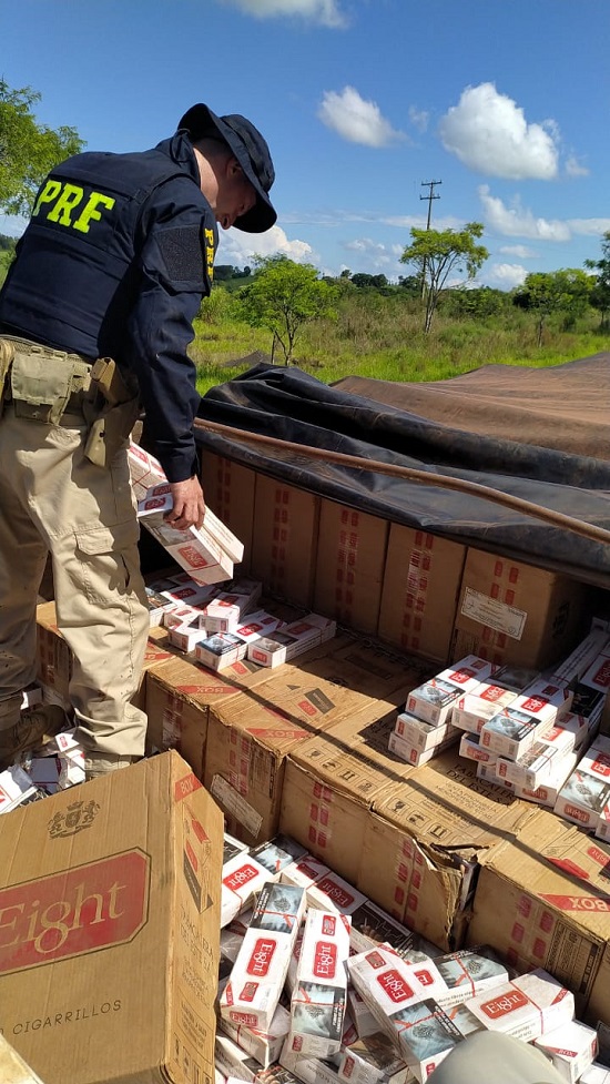 O caminhão estava carregado com aproximadamente 300 mil maços de cigarros de origem paraguaia.