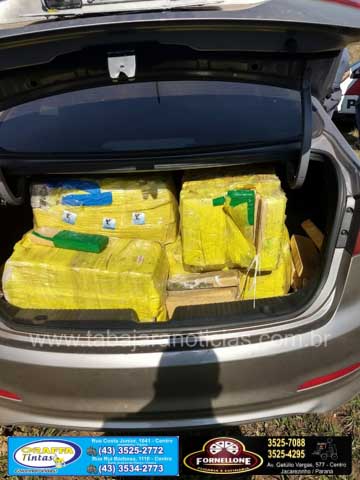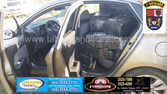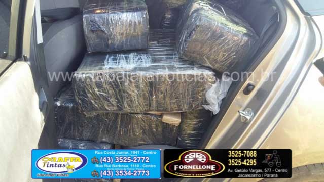 O veículo estava carregado com maconha, sobre os bancos traseiros e no interior do porta-malas, que após ser pesada em um estabelecimento na rua Paraná em Jacarezinho, totalizou 585 quilos da droga, as equipes da Policia, por segurança bloquearam a rua Parana para a pesagem do entorpecente.