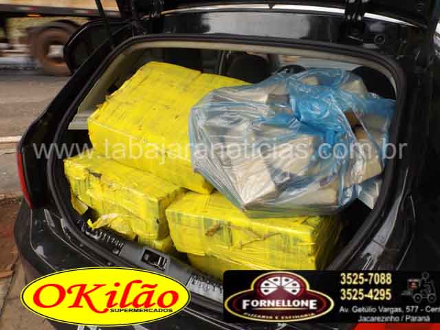 De imediato foi dado voz de abordagem que de inicio não foi acatada mas pouco depois o motorista acabou parando, no interior do veiculo que era ocupado pelo motorista de 22 anos e uma jovem de 18 anos, e junto foi encontrado vários tabletes de maconha que após pesados totalizaram 250 quilos da droga.