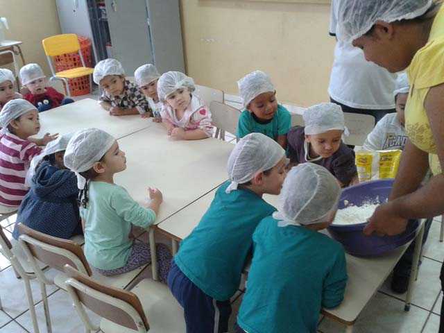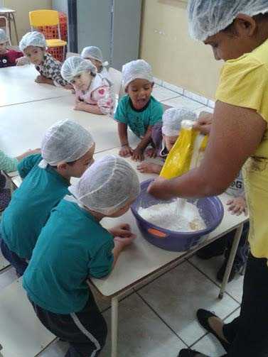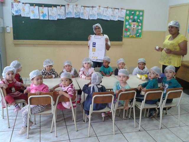 Na tarde da quinta-feira, dia 03/12/15, os alunos da EMEI Cantinho Meu finalizaram o Projeto de culinária “tem criança na cozinha” desenvolvido durante o ano letivo de 2015. Todo mês as crianças tinham um dia especial indo para a cozinha junto com as professoras e estagiárias para preparar o próprio lanchinho da tarde, assim eles conseguiam aprender brincando através dos cartazes lúdicos das receitas as noções de pesos e medidas, hábitos de higiene e o mais importante aprender a comer ou pelo menos experimentar alimentos saudáveis. O contato direto com as receitas e com os rótulos dos alimentos proporcionou as crianças a associação ao mundo das letras. Para finalizar o projeto a equipe da EMEI Cantinho Meu recebeu os pais, membros da Secretaria Municipal de Educação e a comunidade para saborearem as deliciosas receitas feitas com o reaproveitamento de diversos tipos de alimentos, elaboradas juntamente com as crianças. A diretora Luciane Maria Camargo Lima e a coordenadora Camila dos Santos Dekaminoviski deram todo apoio ao projeto ensinado assim o prazer por uma alimentação saudável e ensinando as crianças a dizerem “não” ao desperdício.