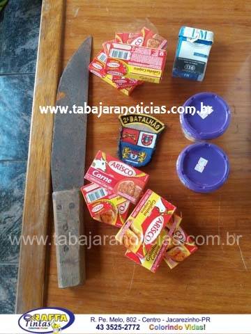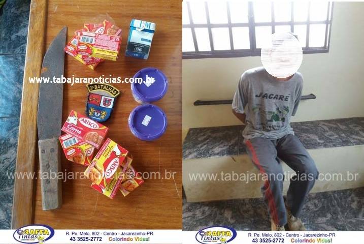 Diante dos fatos foi dada voz de prisão e o encaminharam até a delegacia de Policia juntamente com o fação e os produtos que foram furtados e entregue as autoridades competentesIMG-20160428-WA0040