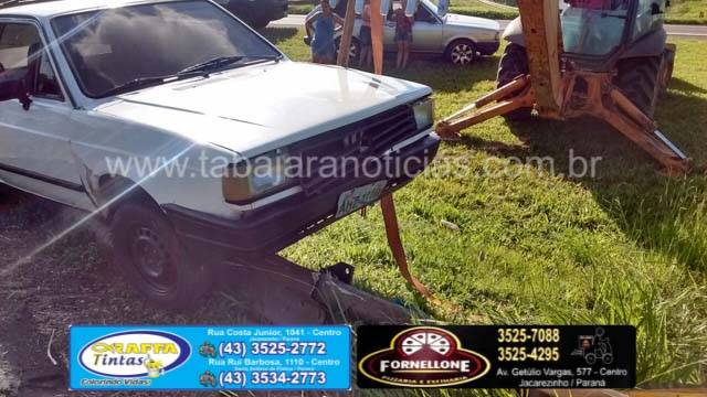 A equipe da Econorte esteve no local e foi preciso o uso de uma pá carregadeira para retirar o veiculo do local.