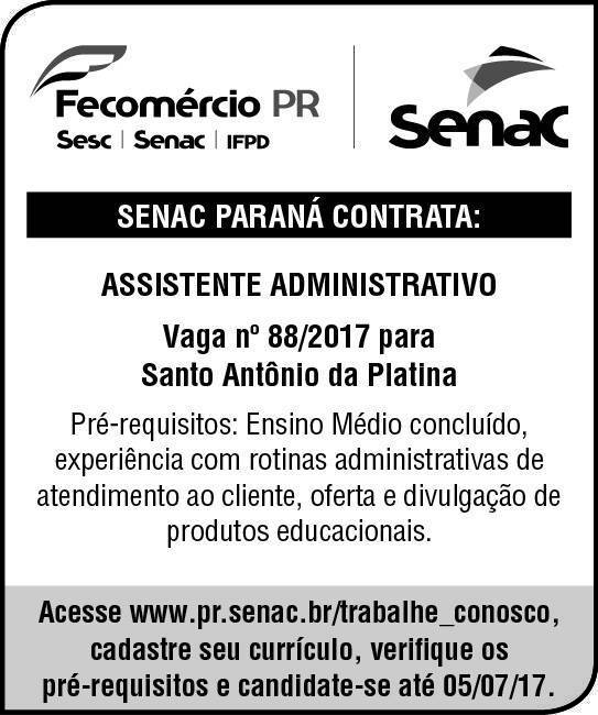 SENAC contrata assistente Administrativo