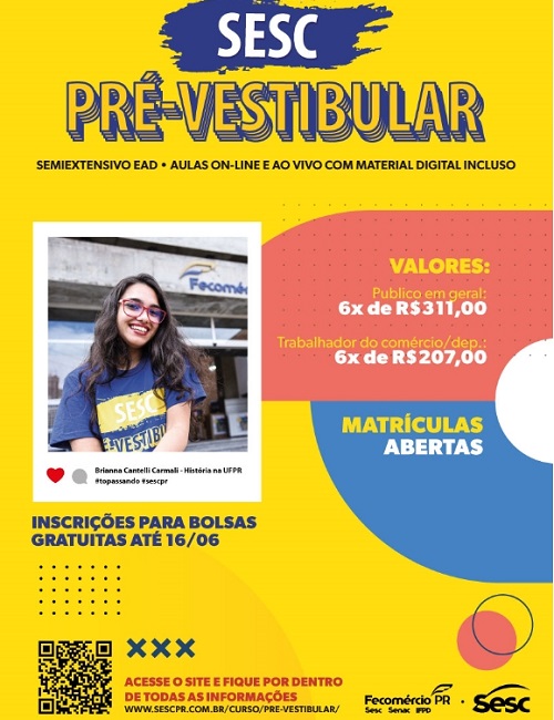 Informações:  https://www.sescpr.com.br/curso/pre-vestibular/