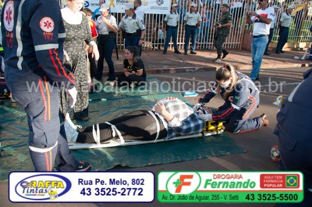 No inicio do ano de 2015, com o ideal e o sonho de ajudar a redução de acidentes, Tabajara e o Tenente Angelino dos Bombeiros idealizaram a realização de uma simulação de acidente visando a conscientização da população para esta calamidade e assim evita-los, após vários preparativos, dificuldades e reuniões e a ajuda de parceiros como o Sargento Coelho e todos os outros profissionais do corpo de Bombeiros de Jacarezinho, e também com a parceria da Policia Militar, Senac, Tiro de Guera, Detran, Samu entre outros foi possível realizar na tarde desta quarta 25 um grandioso treinamento com a simulação de um acidente com múltiplas vitimas com vários tipos de gravidade, com os alunos do curso de enfermagem sendo as vitimas que foram manqueados pela Nadiela, que chegaram quase a realidade dos ferimentos para deixar a cena ainda mais próxima da realidade, a escolha da mes de maio deu se em apoio ao movimento maio amarelo