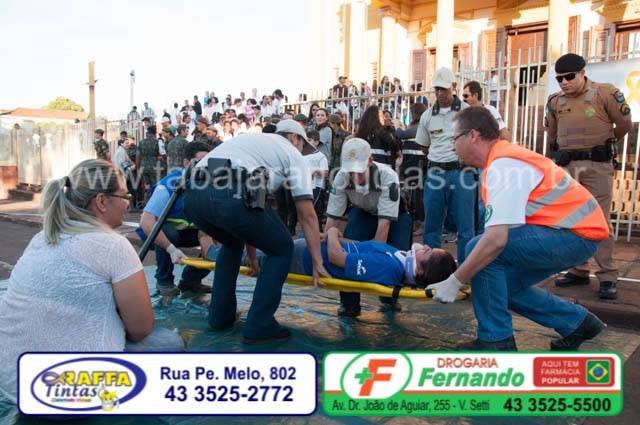 Simulação de acidente com múltiplas vitimas em frente a Catedral de Jacarezinho