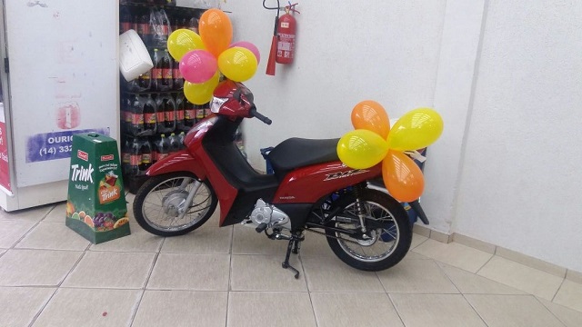 Sorteio da Biz da promoção sucos Trink e Supermercados O Kilão
