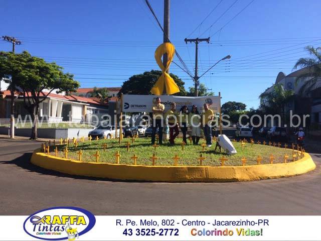 Foram colocadas varias cruzes na rotatória das avenidas para simbolizar o número de mortos em acidentes trânsito por dia em nosso país, a cada 12 minutos uma vítima fatal, esta epidemia tem que acabar, junte se a nós, seja mais um por um trânsito mais humano.