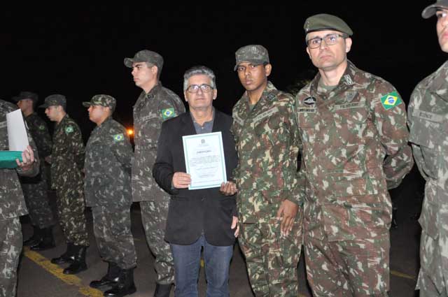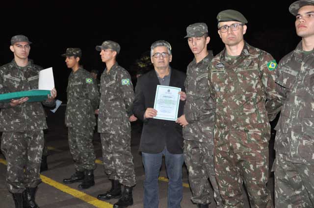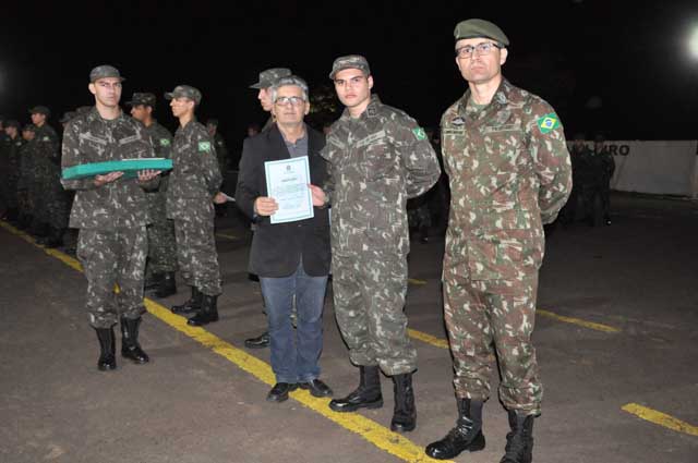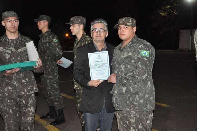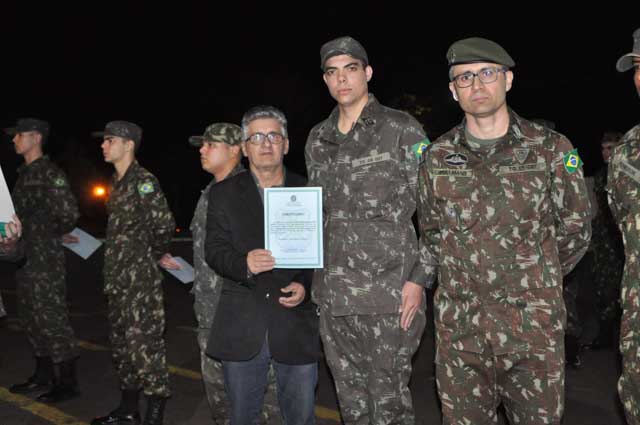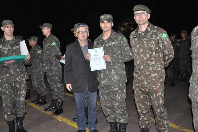 O Prefeito Municipal e Diretor do Tiro-de-Guerra Dr. Sérgio Eduardo Emygdio de Faria, acompanhado do Chefe de Instrução, Subtenente Rogério Wollmann, do Secretario Municipal de Conservação Urbana e ex-Atirador Sr José Antônio Costa, do Presidente da Câmara Municipal de Vereadores Pastor André de Melo Souza, do Vereador Sidnei Francisquinho realizaram a entrega de Diploma e Distintivo do Curso de Formação de Cabos.