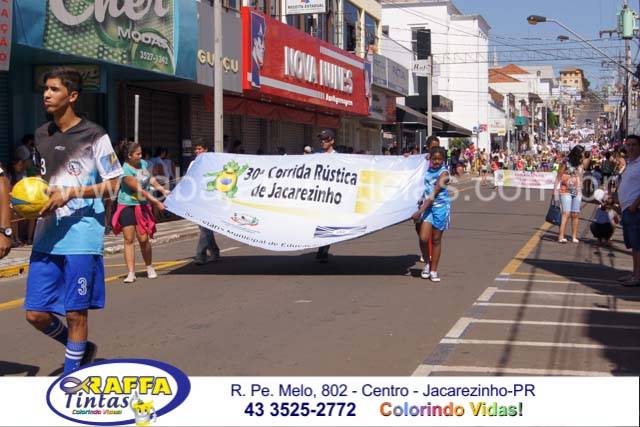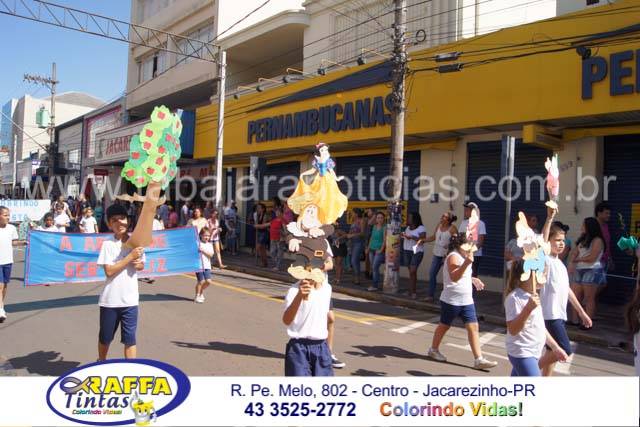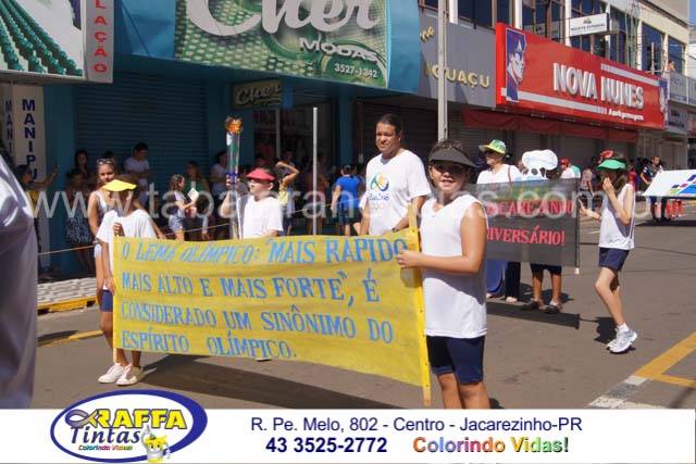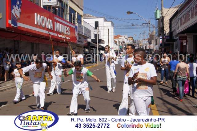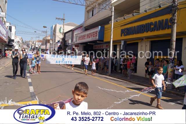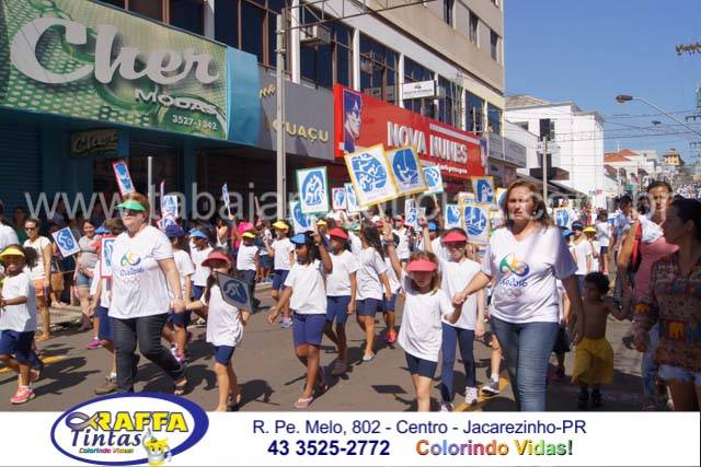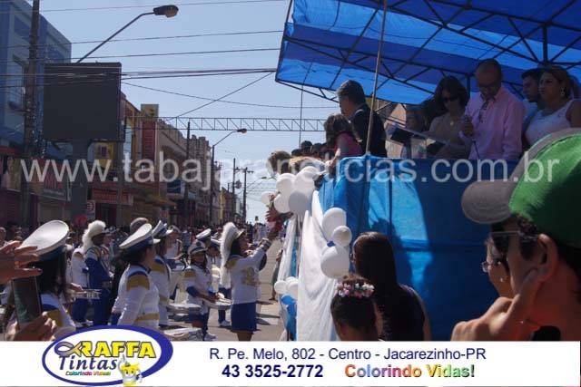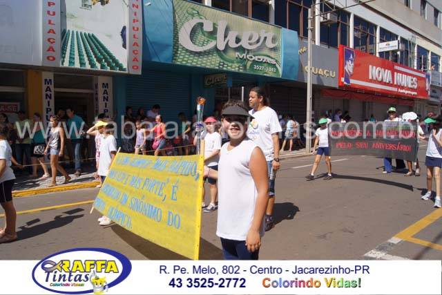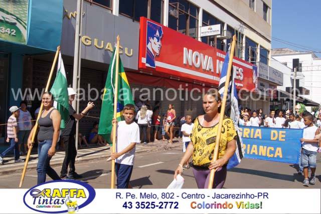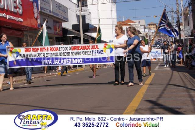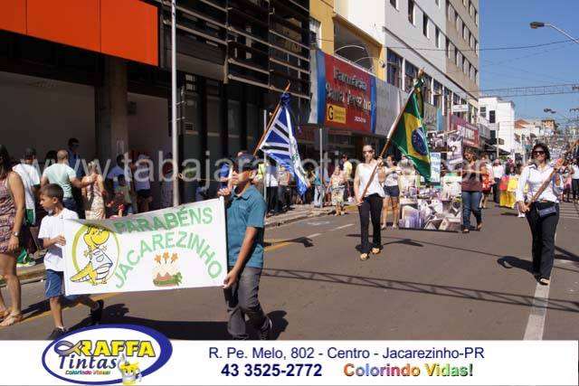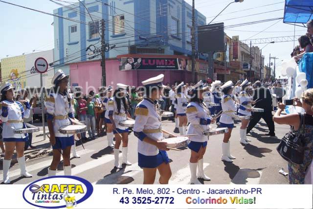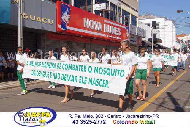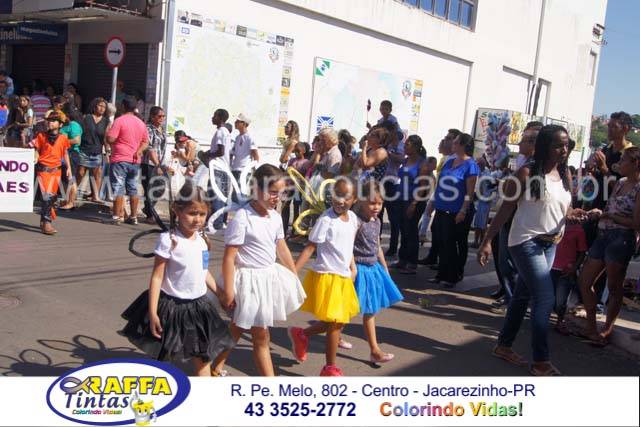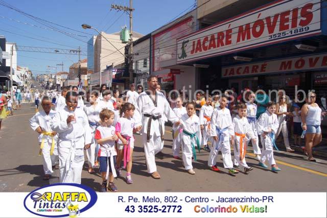 Aconteceu neste sábado 02 o tradicional desfile de aniversário de Jacarezinho que completou 116 anos de emancipação politica, o desfile contou com a participação várias escolas e instituições do município, muitas crianças também participaram abrilhantando ainda mais o evento que contou também com a presença de várias autoridades do município entre eles o prefeito Dr Sérgio e a vereadora Luciana, o vereador Fabiano Saad entre outros