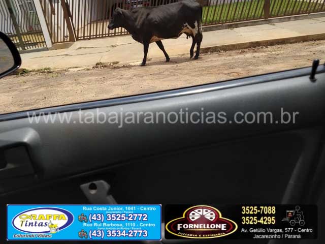Um de nossos internautas registrou os animais cercas de 8 vacas soltas na Av Antonio Gentil no bairro Nova Jacarezinho, alem de atrapalhar o transito, colocavam em risco os motoristas e motociclistas que passavam pelo local, não se sabe de quem são as vacas que logo após foram para um terreno baldio próximo do local das fotos.