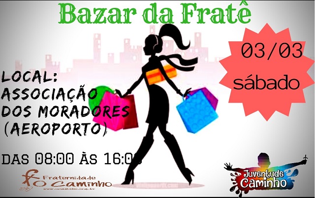 Você não pode perder!! O Bazar será realizado na Associação dos moradores do bairro aeroporto, não perca. Chame os vizinhos, amigos, família e vamos todos para o Bazar da Fratê te esperamos lá.