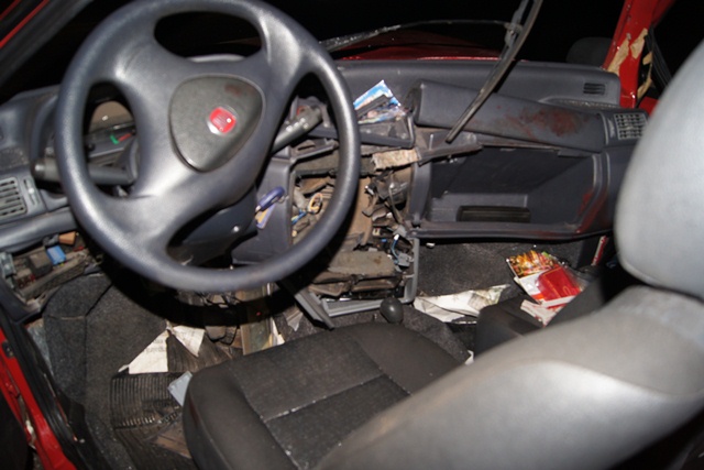 O condutor do Uno ficou preso nas ferragens sendo necessário que fosse retirado pelos Bombeiros.