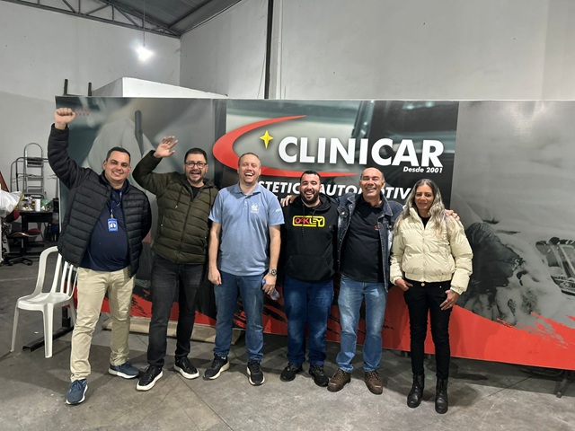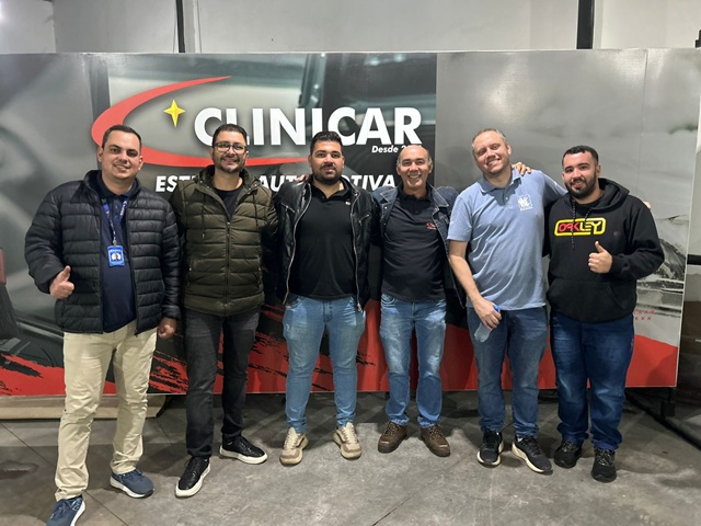 Estiveram presentes também o Sr. Wilson, proprietário da Color Tintas, acompanhado do gerente Pedro e sua equipe, além dos anfitriões Tabajara e Gustavo, sócios da Clinicar. O evento teve como foco principal a demonstração do portfólio das marcas e a correta utilização dos produtos no processo de repintura e acabamento automotivo.