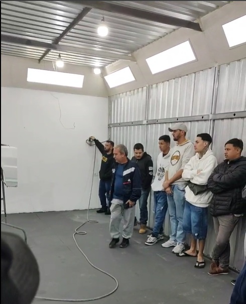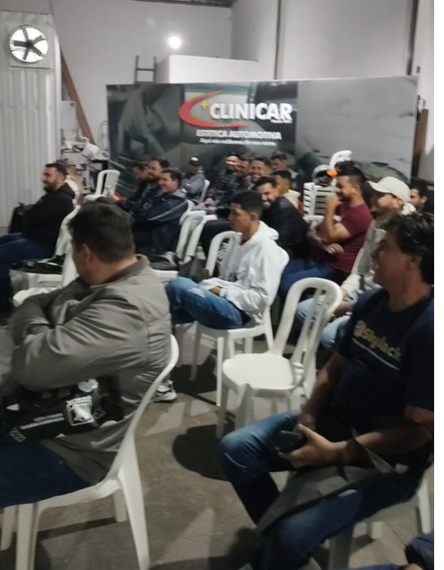 O workshop técnico aconteceu nas instalações da Clinicar e reuniu representantes de quase todas as oficinas de funilaria e pintura da cidade, fortalecendo a capacitação dos profissionais locais. A apresentação foi conduzida pelo técnico Artur e pelo representante Henrique, ambos da Skylack, além do técnico Wendel, da Indasa, que demonstraram as últimas inovações em produtos e técnicas de aplicação.